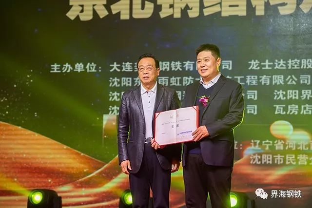 劉文博主席向界海鋼鐵郭德海先生頒發(fā)理事企業(yè)證書
