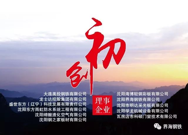 讓我們同心所向,真誠合作,共創(chuàng)聯(lián)盟美好的明天 ------------------------------------ 第四屆東北鋼結(jié)構(gòu)產(chǎn)業(yè)鏈聯(lián)盟年會 主辦單位: 大連美投鋼鐵有限公司 龍士達控股集團有限公司 盛世東方(遼寧)科技發(fā)展有限責(zé)任公司 沈陽東方雨虹防水系統(tǒng)工程有限公司 沈陽締酸液化空氣有限公司 沈陽鋼之家板材有限公司 沈陽海博輕鋼彩板有限公司 沈陽界海鋼鐵有限公司 沈陽市明達采光板有限公司 沈陽學(xué)龍機械設(shè)備有限公司 瓦房店市科碩門窗技術(shù)有限公司 冠名贊助: 吉林建龍鋼鐵有限責(zé)任公司 贊助單位: 重慶東冶集團一遼寧東冶裝配式建筑材料有限公司 遼寧麥琪新材料集團有限公司 沈陽鋼之家板材有限公司 大連美投鋼鐵有限公司 盛世東方(遼寧)科技發(fā)展有限責(zé)任公司 沈陽學(xué)龍機械設(shè)備有限公司 沈陽市明達采光板有限公司 沈陽界海鋼鐵有限公司 沈陽鑫海灣鋼鐵有限公司 糧源酒莊 沈陽鑫雙喜門業(yè) 華祥苑茗茶(興華店) 協(xié)辦單位: 遼寧省河北商會 沈陽市河北商會 沈陽市民營企業(yè)家愛心慈善會 遼寧省建筑金屬結(jié)構(gòu)協(xié)會鋼結(jié)構(gòu)分會