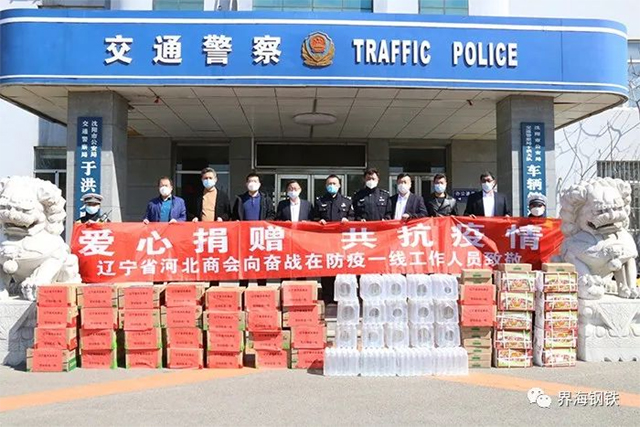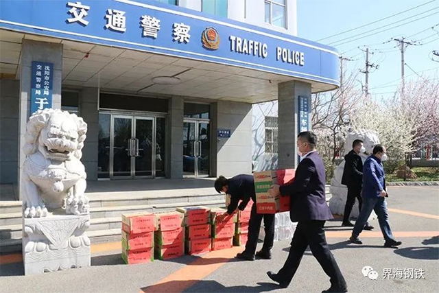 按下暫停鍵20天后,沈陽疫情終于趨向平穩(wěn),迎來了復(fù)工復(fù)產(chǎn),春暖花開。 在本輪沈陽疫情防控過程中,交通警察不分晝夜一直守衛(wèi)在各高速公路口和交通要塞,為人民群眾的健康安全保駕護(hù)航。為表達(dá)對奮戰(zhàn)在防疫一線廣大交警的感謝和誠摯敬意,遼寧省河北商會倡議會員愛心捐款,為防疫一線送去溫暖。 身為商會副會長的界海鋼鐵總經(jīng)理郭德海先生更是對奮戰(zhàn)在抗疫前線的交警勇士們心存敬意,迅速參與到協(xié)會活動(dòng)中,積極組織、策劃、采買等活動(dòng)籌備等事宜。