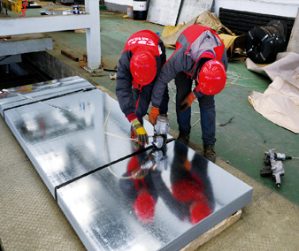 | 開(kāi)平板打包 | 分條打包 | 開(kāi)平板防劃傷打包 | 開(kāi)平板打包現(xiàn)場(chǎng) |